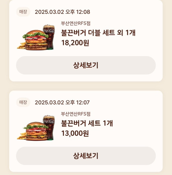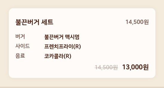 키오스크에는 정식메뉴명칭이: 불끈버거 맥시멈세트, 불끈버거 더블맥시멈세트라고 뜬다.