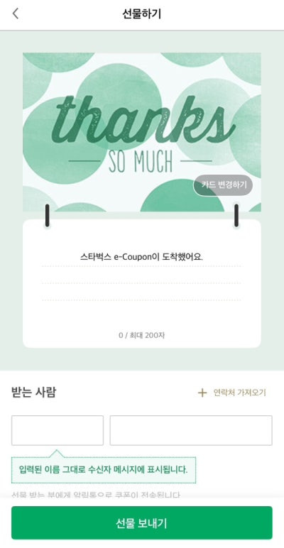 발행한 무료음료쿠폰은 선물하기 가능⭕️