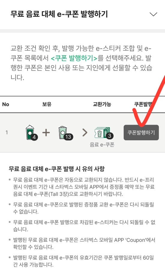 ✅ 무료 음료 대체 e-쿠폰 발행하기