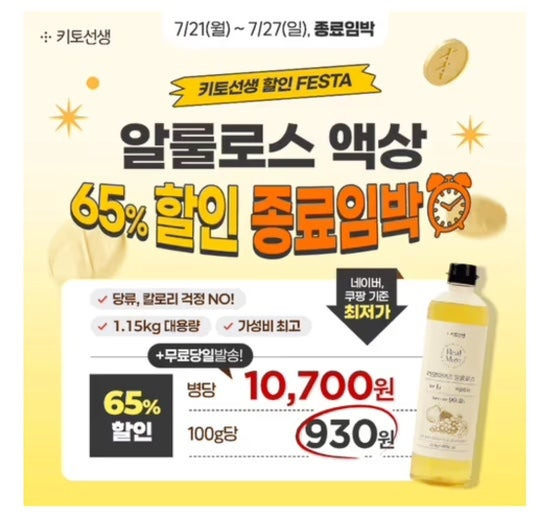 ⏰ 종료임박! 알룰로스 액상 할인 페스타! 65% 할인 & 병당 10,700원