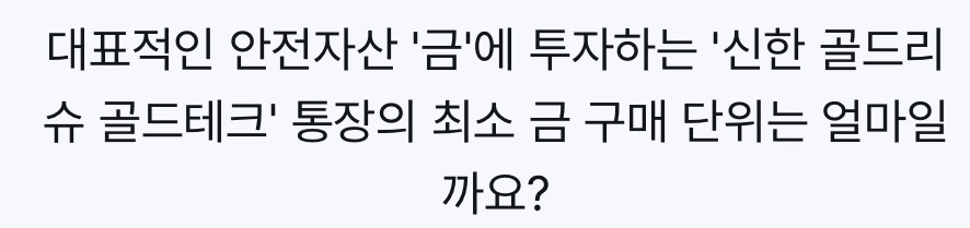 | 신한 슈퍼SOL | 출석퀴즈 |  | 정답: 0.01g |