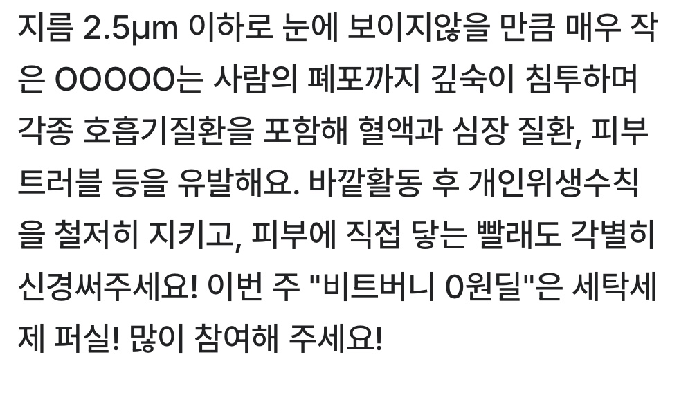 | 비트버니 | 오늘의퀴즈/ 오늘의 상식퀴즈 |  | 정답: 초미세먼지 |