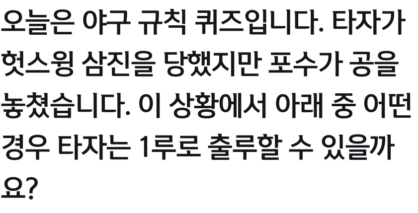 정답: 2아웃 상황이거나 1루에 주자가 없는 경우 |