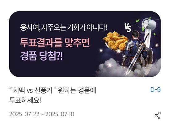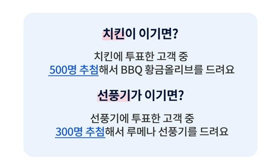 “ 치맥 vs 선풍기 ” 원하는 경품에 투표하세요!