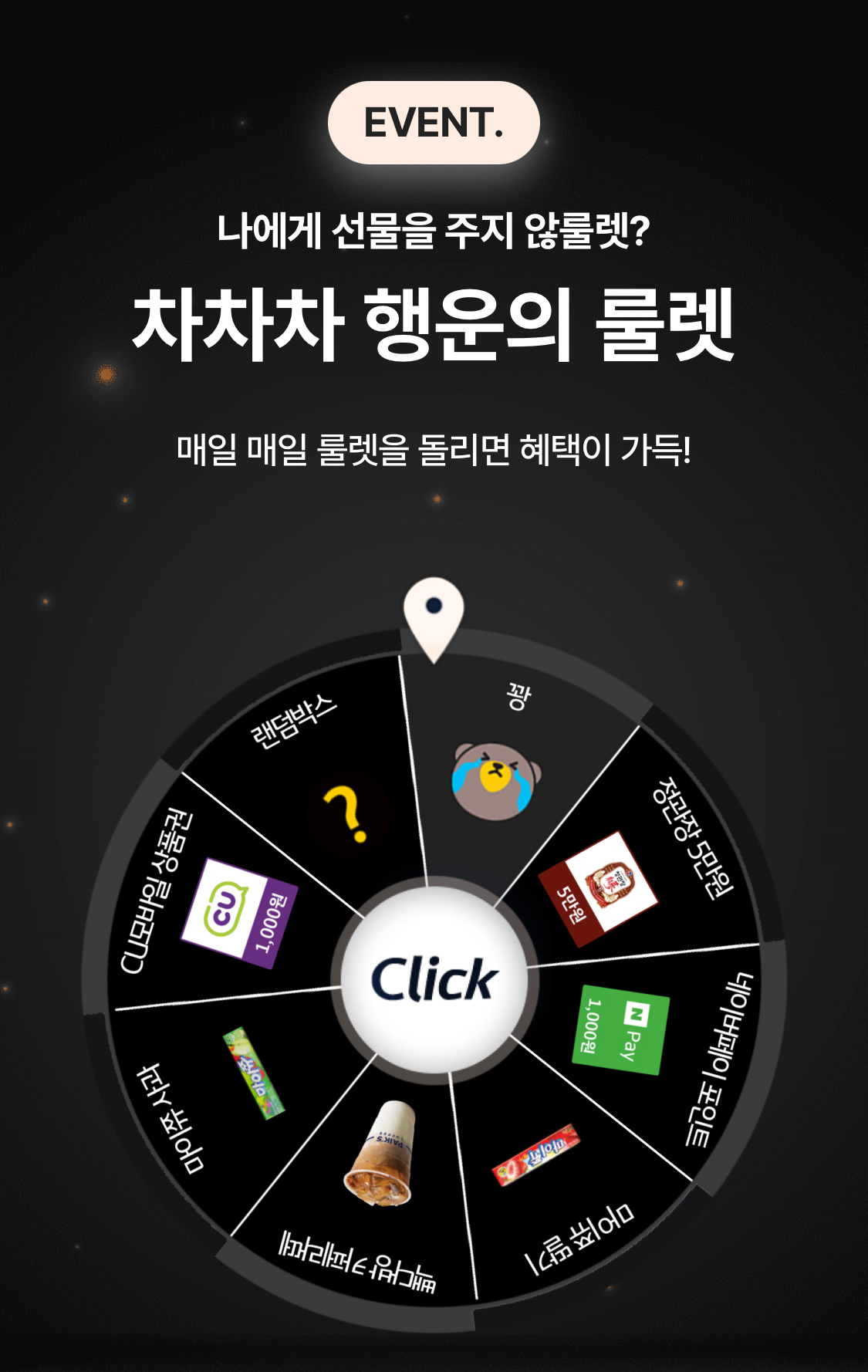 카테고리 없음 KB차차차 행운의 룰렛이벤트:매일가능 by l하나둘셋l 2025. 4. 11. 반응형 [행운의 룰렛 클릭]매번 꽝~~😭😭😭 반응형 공유하기 게시글 관리 one&only 라이프즐기기